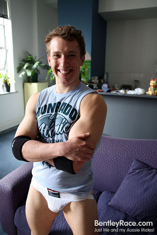 I just finished posting the video I made with my mate Brad.   Brad is becoming a big porn star here in Australia after appearing on BentleyRace a few times now as well as his appearances on the straight site GirlsOutWest.   Apart from being pretty dam sexy, Brad is just a lot of fun to hang out and shoot with.   In this scene he’s chatting with me while jacking off over some porno on my couch.