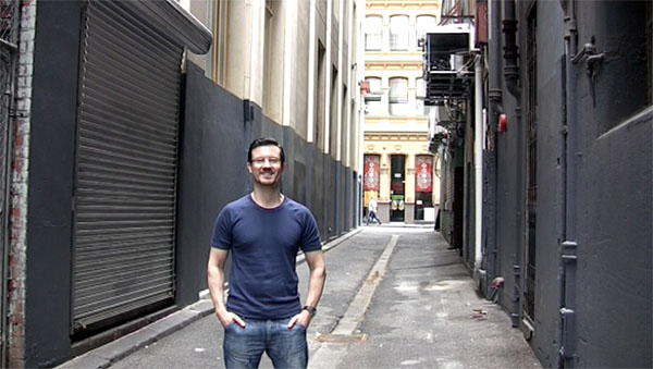 When I posted this remastered video starring Doug and Aaron this week I remembered that it was the first “street” video in the city that I’d ever shot.  I really like shooting a little street scene before we get into the action.  I see it used a lot by the professional studios in their long videos.   You see the characters walking along city streets for a bit before they go inside and get into the sex.   So you get to see a bit of the guys with their clothes on before they get naked.   It’s almost like a little bit of teasing.   I recently saw some elaborate “walk up” scenes on Eric Videos which has inspired me to do more.   Melbourne is the most liberal and accepting city in Australia for artists.   There are always people filming around in the streets, so usually no one minds us filming opening scenes for our dirty movies.